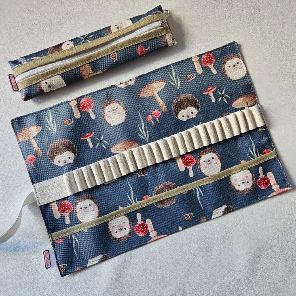 Cartuchera estampada, especialmente hecha para lápices comunes, o microfibras similares en tamaño.