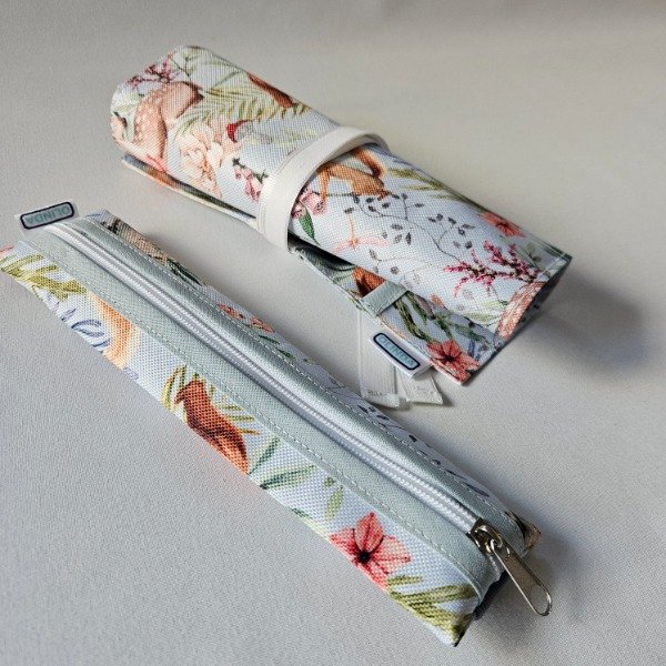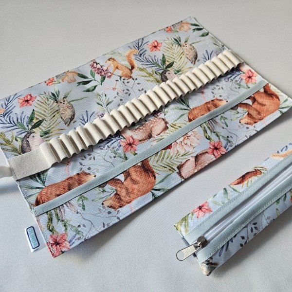 Cartuchera estampada, especialmente hecha con espacios para lápices comunes o microfibras de similar tamaño.