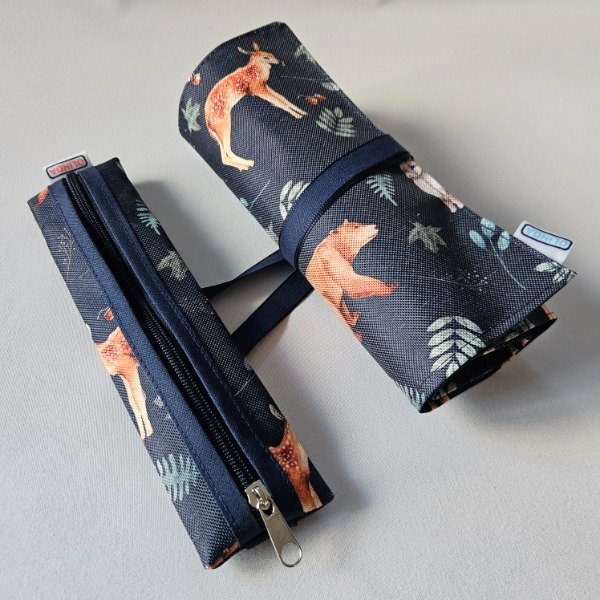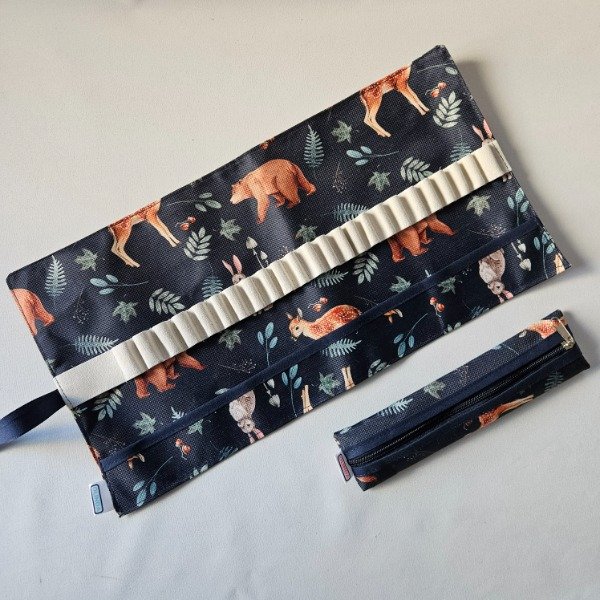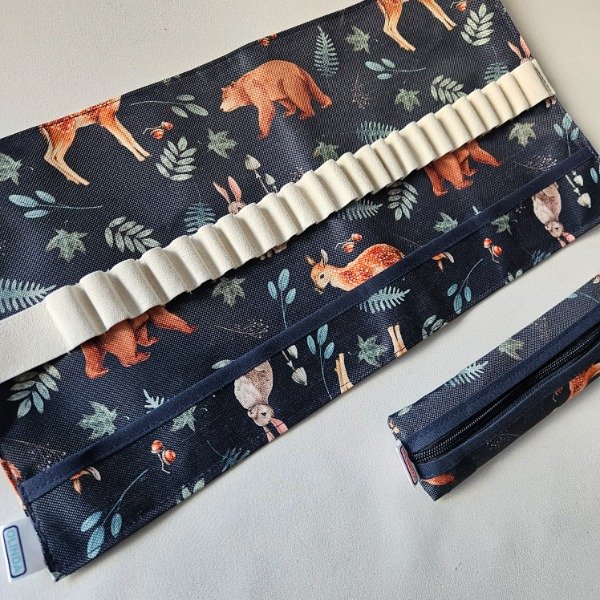 Cartuchera estampa bosque especialmente hecha con espacios para marcadores medianos, tipo crayola tips.